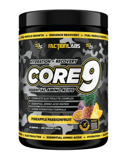 Faction Labs Amino Acid Complex is dripping with EAA’s and BCAA’s. Core 9 also contains a General Health Matrix and comprehensive electrolyte blend. Elevate your training with Faction Labs Core 9.