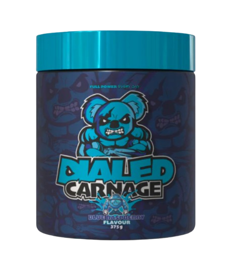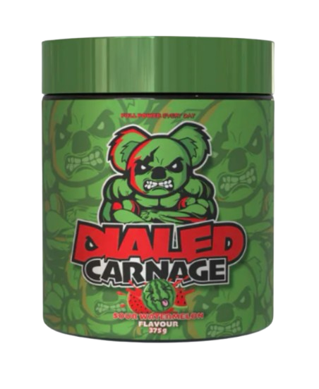 Dialed Carnage set out to take the title of Australia’s Strongest Pre-Workout and honestly…they went out and snatched that sh!t with ease. A full-throttle, no-compromise formula made to push performance to the edge. Contains 840mg of hard hitting stimulants, including 525mg of multi-source caffeine! Clinically dosed with your typical pump ingredients with added Agmpaure® to get blood moving.