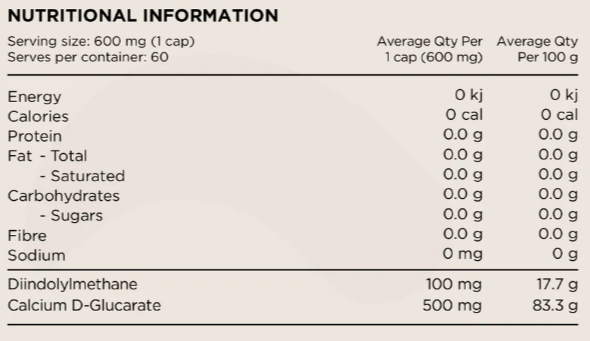 Diindolylmethane (DIM) is a compound derived from the digestion of indole-3-carbinol, found in cruciferous vegetables like Broccoli and Brussels sprouts. This variant is often combined with Calcium D-Glucarate for enhanced benefits.