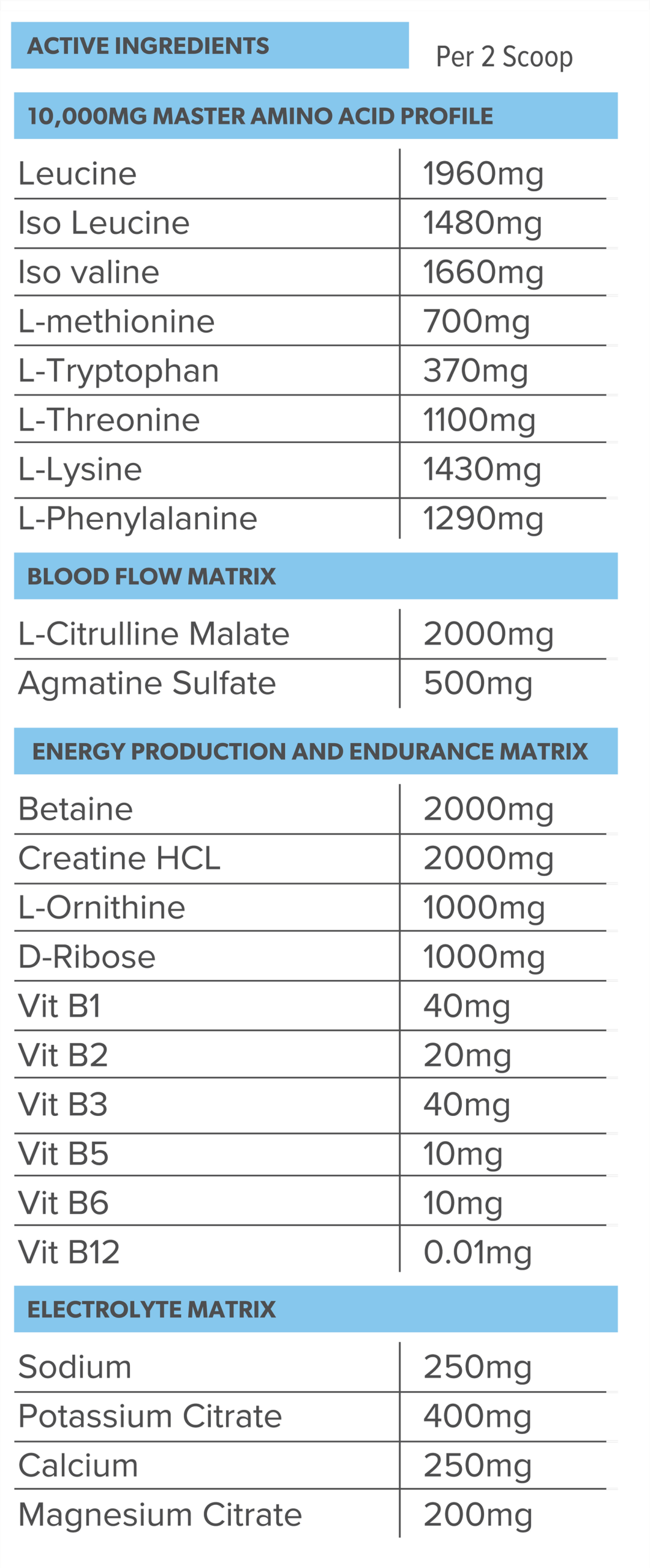 Perfect to help fuel your training days with an advanced blend of Aminos, Electrolytes, Blood Flow Matrix + Energy Production Matrix